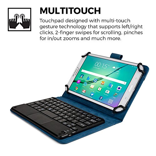 -. Feature : Universally fits tablets in the 7-8" range. The case features adjustable claws that expand from min. 4'' to max 5.1'' inches (10.16 - 12.95 cm) in width, and from min. 6.5'' to max 8.4'' inches (16.51 - 21.3 cm) in height." / Removable magnetic US English QWERTY keyboard for when you just want that hot looking case. / Touchpad designed with multi-touch gesture technology that supports left/right clicks, 2-finger swipes for scrolling, pinches for in/out zooms, plus other Android, Windows 8 & 10 built-in gestures. / With 60h of typing time when fully charged (USB charging cable included) you'll be able to stay productive all week. / All stock shipped from USA. Next day delivery available with Express shipping (excl. remote areas).