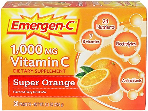 EmergenC - featuring essential nutrients, including 1,000 mg of vitamin C and other immune supporting antioxidants zinc and manganese, 7 B vitamins to enhance energy naturally, and electrolytes to replenish post-workout. Super Orange Flavor.Feature