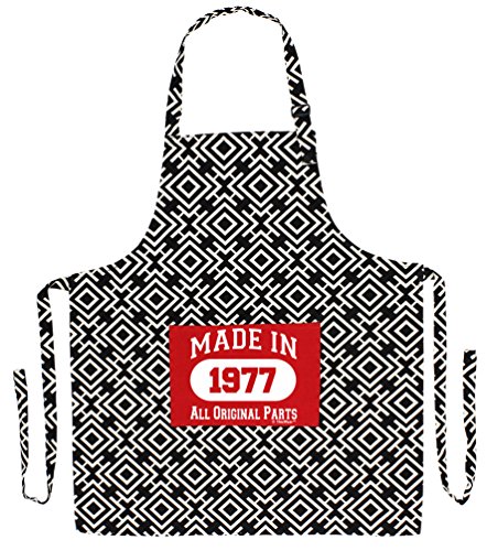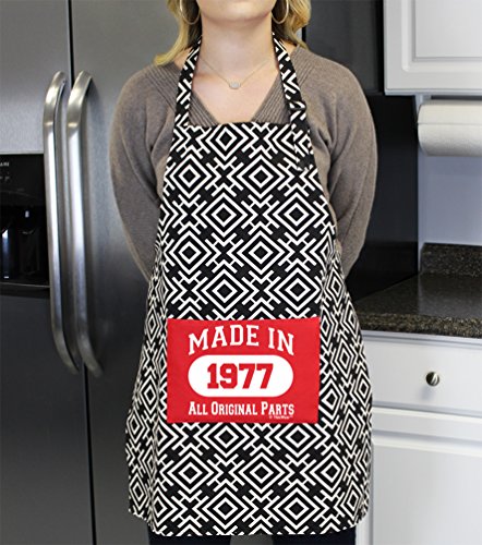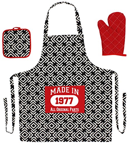 40th Birthday Girl Made 1977 40th Birthday Decorations 3-piece Cooking Apron Set with Oven Mitt and Pot Holder Black Greek Square