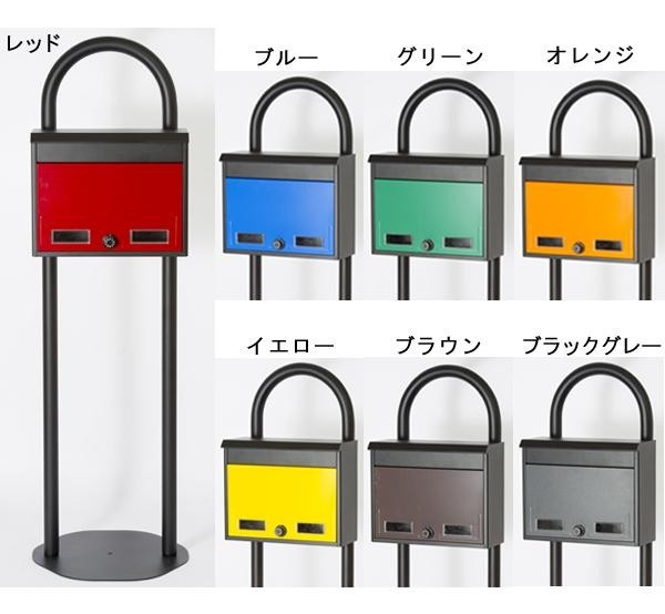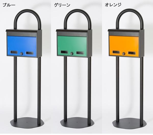 | 素材・材質 | ポスト:スチール スタンド:スチール 背面板:ステンレス 台座:スチール 仕上げ/ポスト本体・スタンド:焼付塗装、ポスト前扉:カラー塗装 |