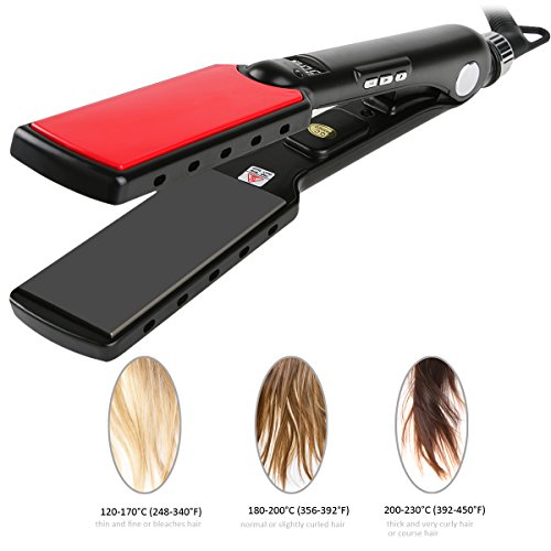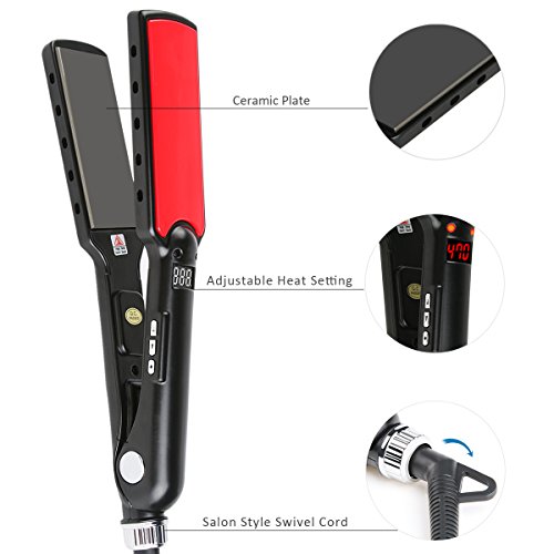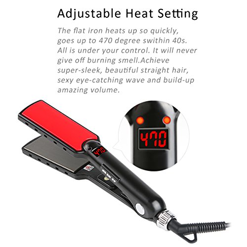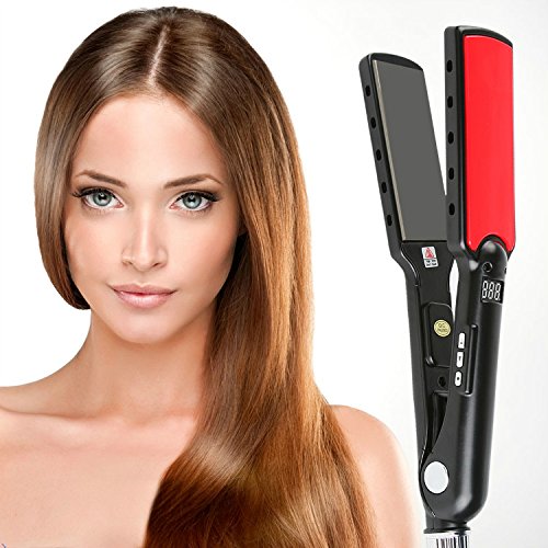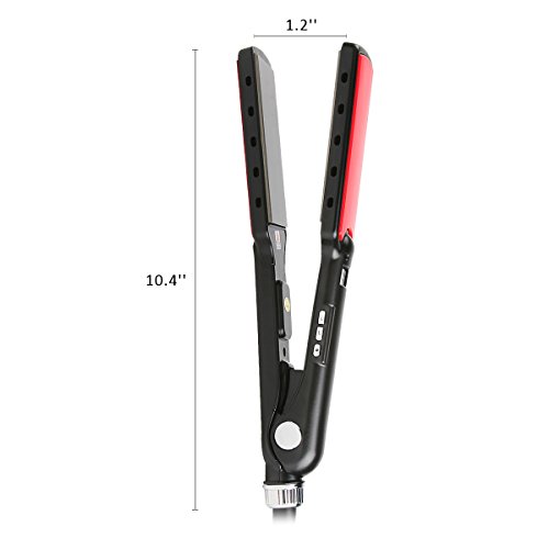 Title : AmoVee Professional Flat Iron with Ceramic Plates 1.6 Inch, 1.6" LCD Displaying Ceramic Hair Straightener with Dual Voltage Auto Shut Off 180 to 470°F - Red