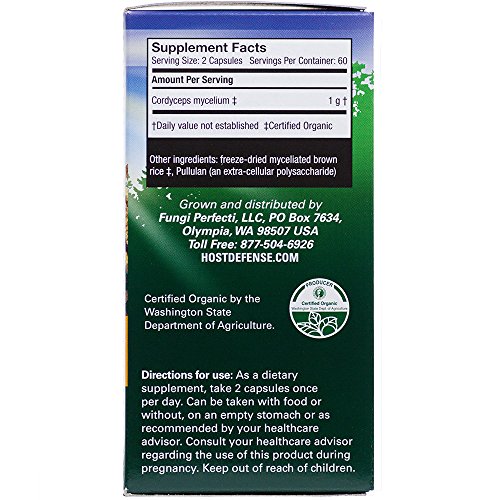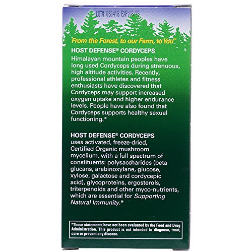 FULL SPECTRUM: Host Defense Cordyceps uses activated, freeze-dried, Certified Organic mycelium, with a full spectrum of constituents: polysaccharides (beta glucans, arabinoxylane, glucose, xylose, galactose and cordycepic acid), glycoproteins, ergosterols, triterpenoids and other myco-nutrients, which are essential for supporting natural immunity.