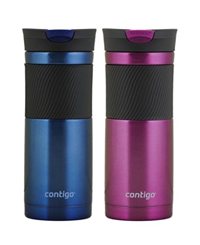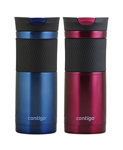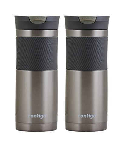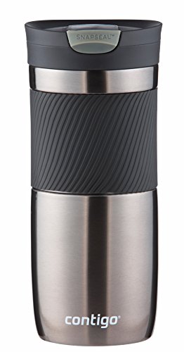 The Contigo Byron Travel Mug is a vacuum-insulated travel mug that has a comfortable grip that provides convenient one-handed drinking for both left- and right-handed users. It is a double-wall vacuum-insulated stainless steel mug that keeps beverages hot for 6 hours or cold for 12 hours. The SnapSeal lid features a 1-piece leak proof lid that allows for quick and easy cleaning while preventing leaks. The Snapseal lid easily snaps up for drinking and snaps closed to seal once you've finished. Made from 100% BPA Free it fits under most single-serve brewers and car cup holders Top-rack dishwasher safe lid and body.