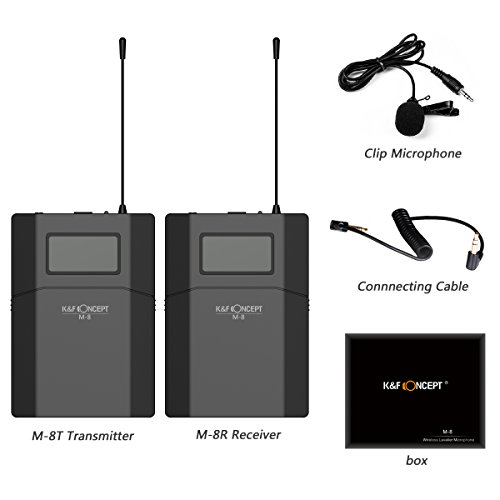 Packing list: 1 X M-8T Transmitter,1 X M-8R Receiver, 1 X Clip Microphone, 1 X Connnecting Cable, 1 X Boot-type adaptor set
