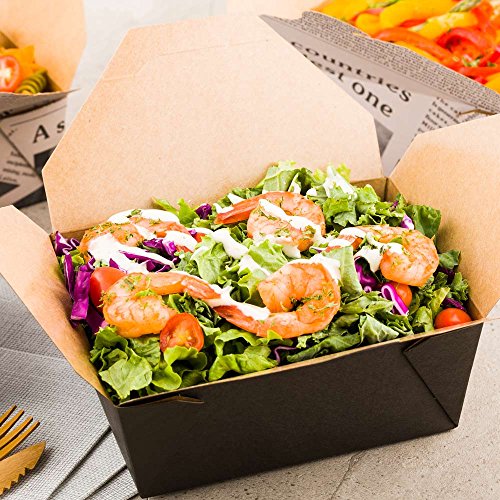 45-OZ Disposable Rectangle Paper Take Out Food Container – #8 Black with Kraft Brown Interior Take Out Box – Easy Fold and Close – ENVIRONMENTAL-FRIENDLY and Recyclable – 200-CT – Restaurantware