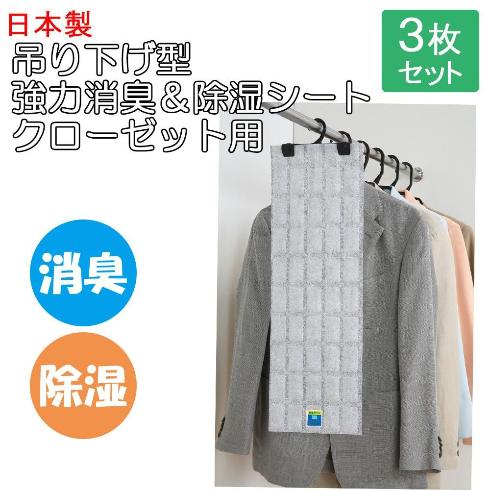 旭化成の消臭不織布「セミアS-3」とB型シリカゲルを使用した強力消臭&除湿シート。クローゼット内の臭いや湿気を強力に吸い取ります。「セミアS-3」は四大悪臭(肉・卵・野菜・魚の腐敗臭)はもちろん、タバコ臭やペット臭など多くの複合臭に対応します。吊り下げ型ハンガー付きです。 |