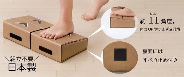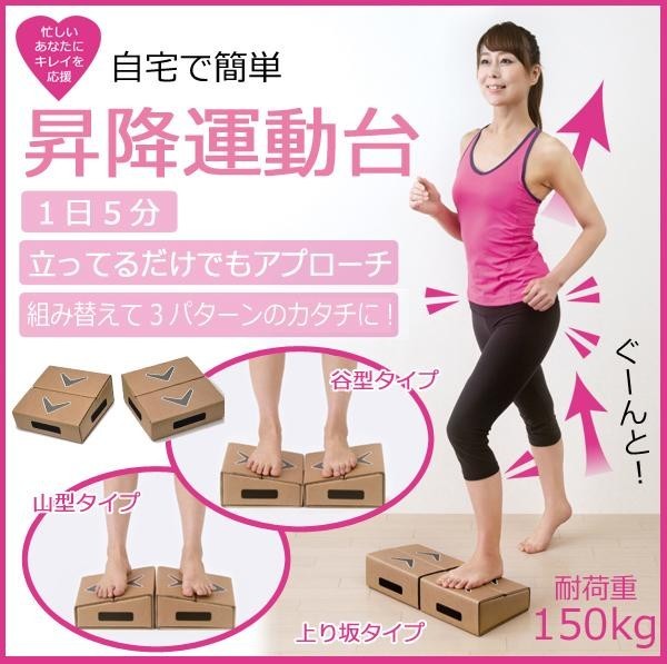| 昇って降りるだけの簡単運動台です。下のフロアにも響きにくく、コンパクトで強度もあるので、わずかなスペースで簡単に運動ができます。また、上り坂タイプ、山型タイプ、谷型タイプと3パターンのかたちに組み替えることができるので、自分に合った運動ができます。再生紙を使ったエコな商品です☆ |