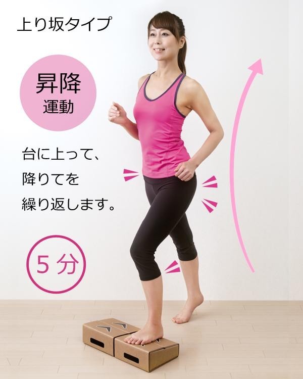 昇って降りるだけの簡単運動台です。下のフロアにも響きにくく、コンパクトで強度もあるので、わずかなスペースで簡単に運動ができます。また、上り坂タイプ、山型タイプ、谷型タイプと3パターンのかたちに組み替えることができるので、自分に合った運動ができます。再生紙を使ったエコな商品です☆ |