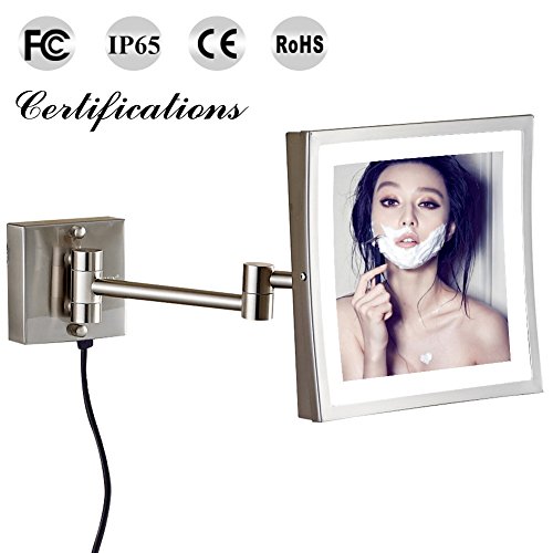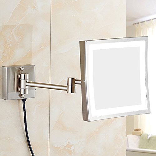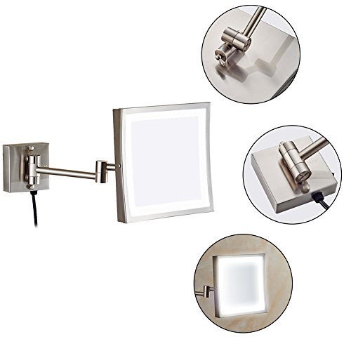 GURUN 8.5 inch Square Wall Mounted Clear Makeup Mirrors with LED Lighted,3x Magnification,Nickel Finished M1802D(8.5in,3x)