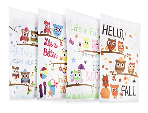 Deluxe 4 Pc Garden Yard Flag Set By Fantastic Flag – Cute Seasonal 12” x 18” Owl Flags For Winter, Summer, Fall, Spring – UV/Fade/Water Resistant Decorative Flags For Front Porch/Mailbox