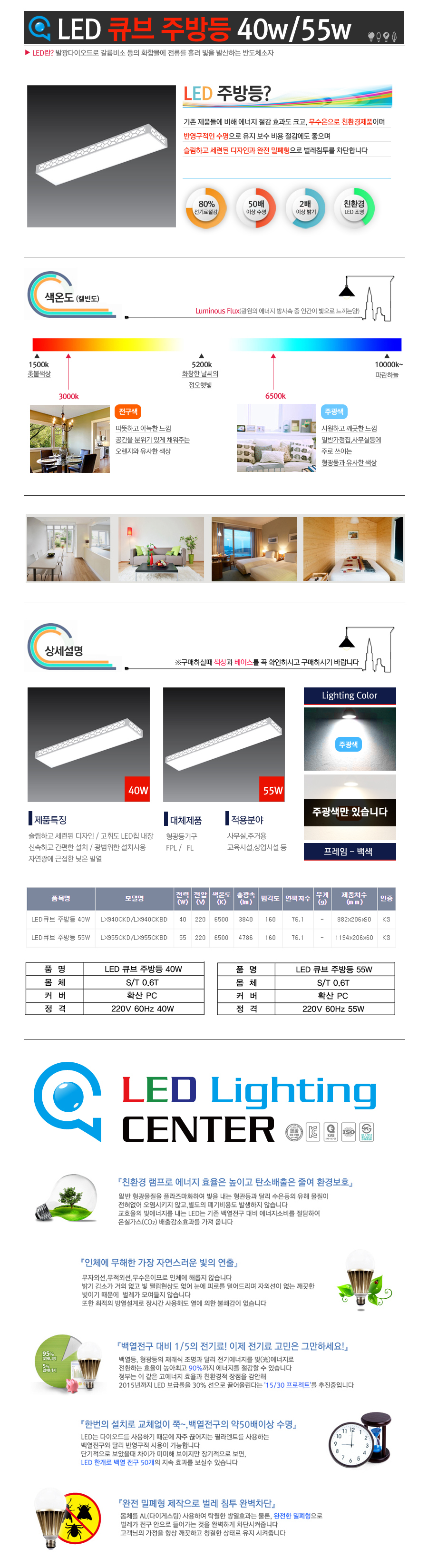 - 품명 및 모델명LED주방등 40W (큐브)