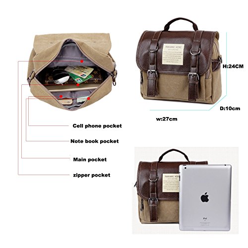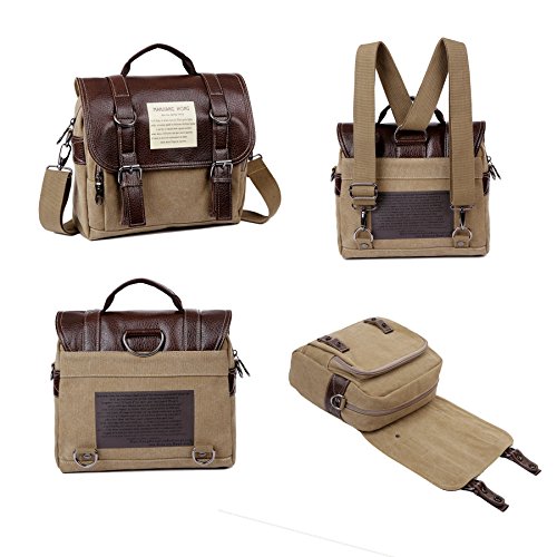 -. Binding : Personal Computers -. Brand : HongyuTing -. ClothingSize : One Size -. Department : unisex-adult -. Feature : 1. New collection, fashional and classical vintage canvas 4 in 1 multi-funtional bag which could be used as messenger bag ,backpack,briefcase and shoulder bag. / 2.High quality canvas and leather make sure it will be sturdy and durable. / 3. This is bag is pretty good for women and men carrying it to work , school or everyday use. / 4. Compartment: one main pocket,one inner zipper pocket ,one organzier pocket for phone/cards, one front zipper pocket / 5.Material : canvas and leather, size: 27cm x10cm x24cm (WxDxH) -. ProductGroup : Personal Computer -. ProductTypeName : CARRYING_CASE_OR_BAG -. Size : One Size -. Title : HongyuTing Vintage Canvas Messenger bag /Backpack/Briefcase/Shoulder Bag 4 in 1