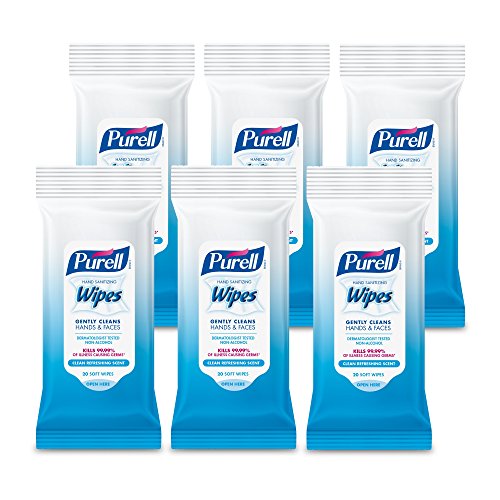 PURELL Hand and Face Sanitizing Wipes – Travel Size Hand Sanitizer Wipes, Clean Refreshing Scent, 20 Count Travel Pack (Case of 6) - 9124-09-EC