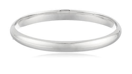 -. Feature : This simple, timeless sterling silver bangle is the ideal accessory for nearly any occasion, making it a staple for her jewelry collection. / Push-button hinge closure / Crafted in .925 sterling silver / Domestic