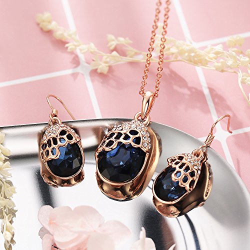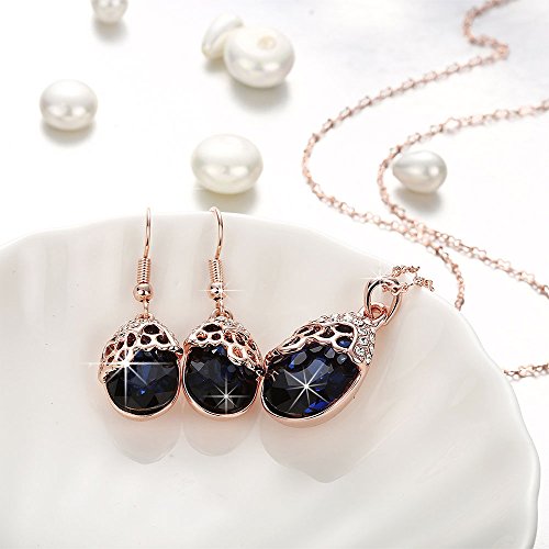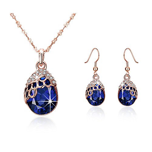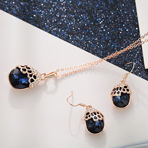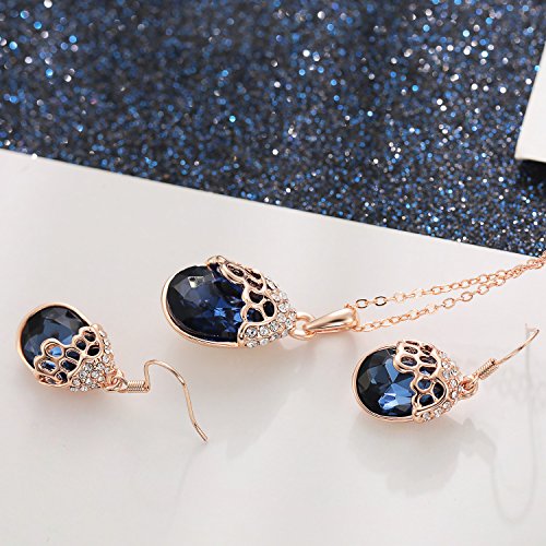 -. Feature : ♥Blue Ocean Story♥ This Teardrop of a Mermaid jewelry set is a charming mermaid concept with clear and blue crystals. Wear it to make every day feel magical! We love its deep blue color pendant because it feels like it's like telling a mysterious, blue-ocean story, enhancing any woman's appearance with a graceful and noble touch. / ♥Elegant&Feminine♥ The deep blue gemstone with glitter crystals creates an elegant and feminine feeling. The trendy Teardrop shape pendant will NEVER go out of fashion. Suitable for any occasion, be with it for an evening out or everyday wear. Wear the matching outfits to create a truly breathtaking ensemble! / ♥Perfect Gift Choice♥ Comes in a Jewelry Gift Box, no gift-wrapping needed. Perfect for her on Birthday, Wedding Anniversary, Valentine's Day, Christmas Day, Mother's Day, or any special day. Great gift for Mom, teen girls, and women. / ♥100% Satisfaction ♥Ophanie is committed to providing the best products and the best services to our customers. Please feel free to contact us if you are unsatisfied with the item or have any problem. We will assist you in finding a solution promptly! Your feedback is our motivations to improve. We look forward to your 5 star review! / ♥ Specifications ♥ Jewelry set includes: 1 pendant necklace & 1 pair earrings. Material: rose gold-plated & artificial gemstone. Necklace Chain length: 17.72"+1.97". Earrings size: 1.42x0.51".