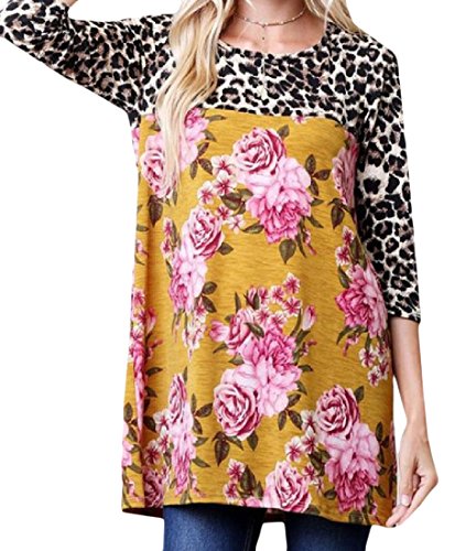 -. Title : Tootess 女性の長い袖のヒョウのフローラルプリントクルーネックブラウス