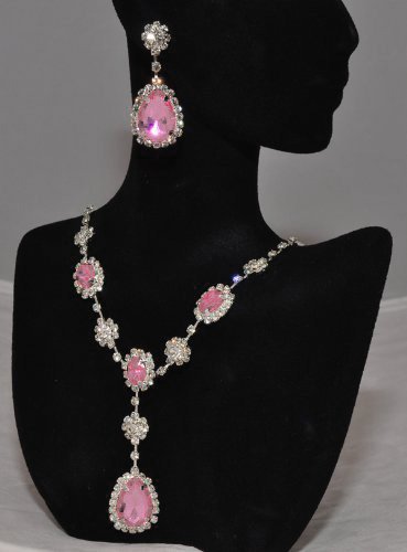 -. Binding : Jewelry -. Brand : JewelryStylist.com -. Department : womens -. Feature : Pink Colored Austrian Crystal Drop Necklace & Earrings / Earrings are a great length at 1 3/4"s long. / Necklace can be worn between 14"s and 18"s with attached extension chain and 2.5" drop / Stunning Set - You won't be missed in this set / Shipped in a black box or organza bag for easier gift giving -. ProductGroup : Jewelry -. ProductTypeName : FASHIONOTHER -. Title : Pink Crystal Necklace & Earring Set - Light Pink Prom Bridesmaid Jewelry