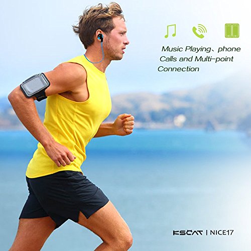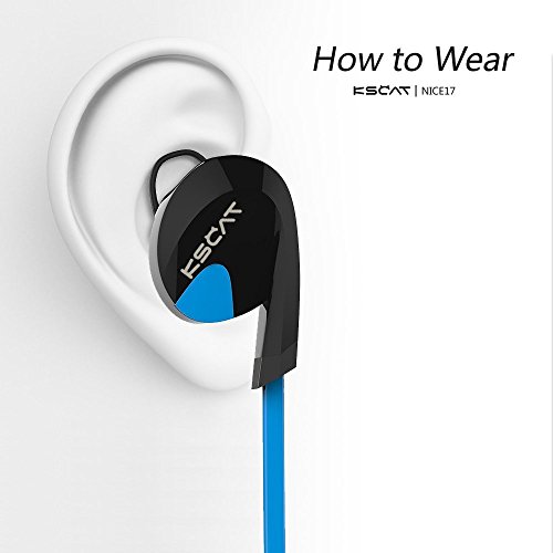 KSCAT Bluetooth Headphones Stereo Wireless Earphones for Running with Mic 6 Hours Play Time, Bluetooth V4.1, Sweatproof, Secure Ear Hooks Design, Blue