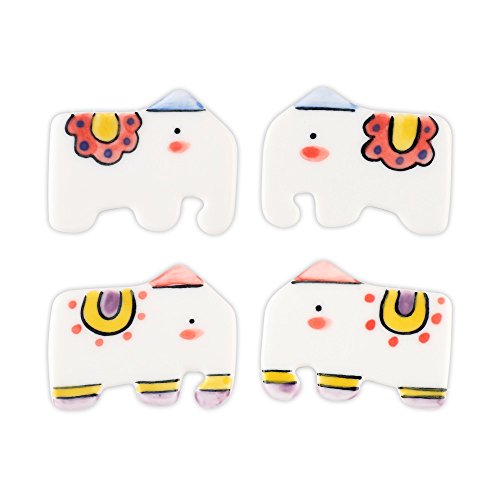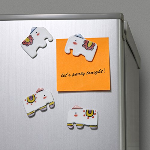 4 Pack Refrigerator Magent, Handmade Ceramic Design ,Perfect Magnet for Whiteboard ,Photos ,Calendar,Daily Office Use, Elephant Artcraft By Zigguo