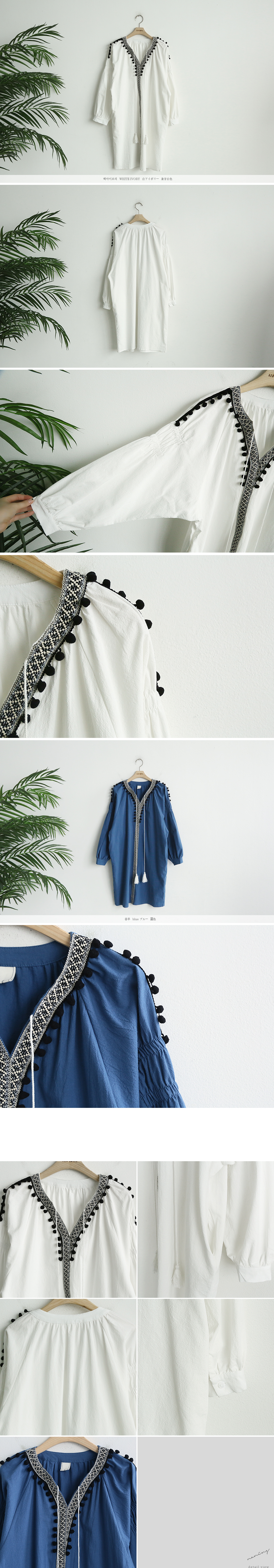 에스닉한 자수와 어깨라인부터 바스트부분까지 폼폼이로 포인트를 주었답니다.
