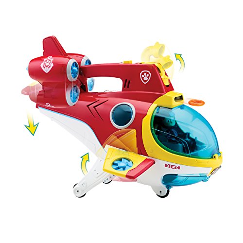 Pups to the rescue! Embark on daring new missions with Ryder and his Sub Patroller! In this incredible rescue vehicle, you can soar through the sky or dive through the imaginary sea! Load Ryder (figure included) into the cockpit and plunge straight into action. Press down on the yellow button to hear Sea Patrol sounds and see headlights flash, lighting your way for deep sea missions. When you and Ryder spot a sea friend in trouble, use the life ring launcher! Press down on the yellow periscope to hear sounds, see flashing lights and launch life rings to save the day! If the mission takes you into a tiny space, Ryder can go from driver to diver! Open the trapdoor and he’ll swim to adventure using his handheld propeller. As the Paw Patrol’s incredible rescue vehicle, there’s room for pups on board! Fly to shore and load the pups into the cargo bay and cockpit! No mission is too big – especially with the Sub Patroller! Climb on board and deep dive into adventure!Feature