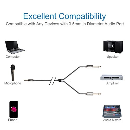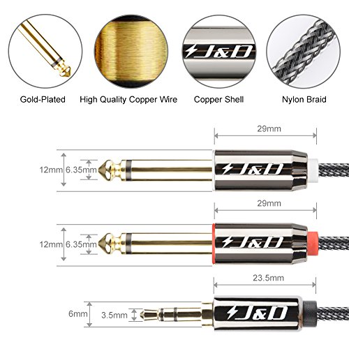 Studio : JD Tech Publisher : JD Tech Binding : Electronics Product Description Why Choose JD Tech? 1. The JD Tech means high-quality products for reasonable prices. Our products are stylishly designed and produced with care to ensure high quality. 2. We boast excellent customer service with a high satisfaction rating, with our team of representatives ready to assist you Monday to Friday, from 9:30AM to 5:30PM Pacific Time. 3. We pack and ship your orders directly from our US-based warehouse within 24 business hours, and tracking information will be provided to you as soon as it's available. Description JD Gold-Plated 3.5mm 1/8" TRS Male to 2x 6.35mm 1/4" TS Male Mono Cable Splitter with Zinc Alloy Housing and Nylon Braid. [Easy Connection] Connecting your smartphone, laptop or PC with a 3.5mm jack output to a device with 2 x 6.35mm jack inputs such as speakers, mixing desk and so on. [Excellent Sound] Corrosion-resistant Gold-Plated Metal connecters making the sound signal transmits with minimal signal loss. [Durable] Zinc alloy and dual layer nylon braid protect the cable from harsh installation where the cable is tugged across sharp edges [Composition] 3.5mm 1/8" Male to 2X 6.35mm 1/4" Male [Warranty] 1-month hassle free return and 18-month limited warranty (free replacement)