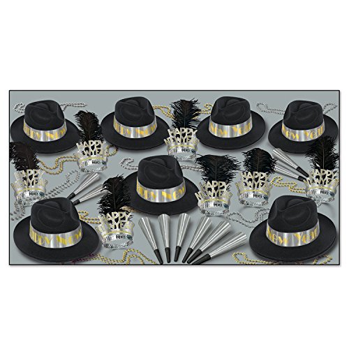Beistle Assortment for 50, Platinum/Gold, Black/Silver/Gold