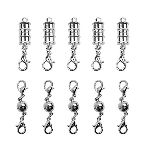 This set included 10 pieces of magnetic lobster clasps, made of brass with silver tone plating, Simply clip the lobster claw onto your existing necklace/bracelet and clip your necklace's/bracelet's closure onto the chain.Feature