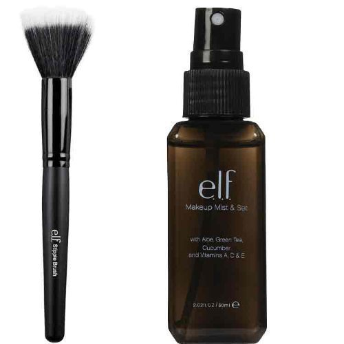 elf Makeup Mist and Set, Clear, 2.02 Ounce and Stipple Brush Features:* The elf Makeup Mist and Set, Clear, 2.02 Ounce: Keeps your makeup staying in place all day with a radiance boosting invisible hold The invigorating mist moisturizes and soothes the skin The lightweight, comfortable and alcohol free formula improves makeup wear-ability.* The e.l.f. Stipple Brush: Use this brush with any liquid or powder face product such as foundation, blush or bronzer to build your coverage from sheer to heavy. Anti bacterial, synthetic haired taklon brush Can be used with wet or dry products Create a flawless look with this e.l.f. studio brush