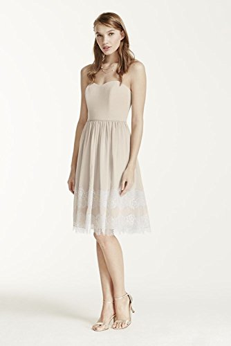 Stylish, fun and chic, your wedding party will stand out in this beautiful crinkle chiffon dress! Strapless bodice with sweetheart neckline and figure flattering natural waist. Contrast lace bands add texture and a unique feminine detail to the hemline. Fully lined. Back zip. Imported polyester. Dry clean only.
