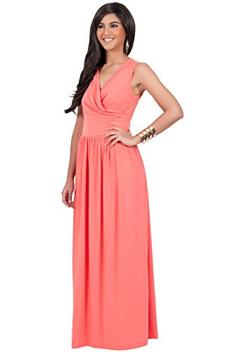 OCCASION - Sleeveless bridesmaids dresses or bridal party gowns for every wedding. Enjoy these wonderfully versatile full-length Coral maxi's as a formal prom dress or understated ball gowns. Try them in the brighter & lighter colors for Spring or Summer and you will have the perfect sundresses without sleeves. Expectant mothers will love this comfortable design as a long baby shower dress or pregnancy dress with sleeves and it makes for an amazing maternity maxi dresses for women