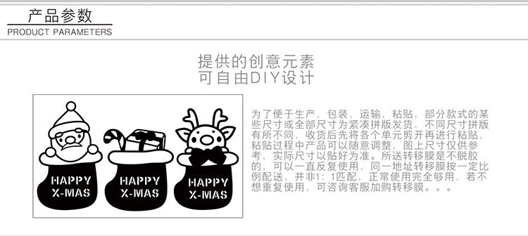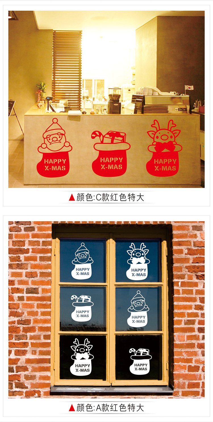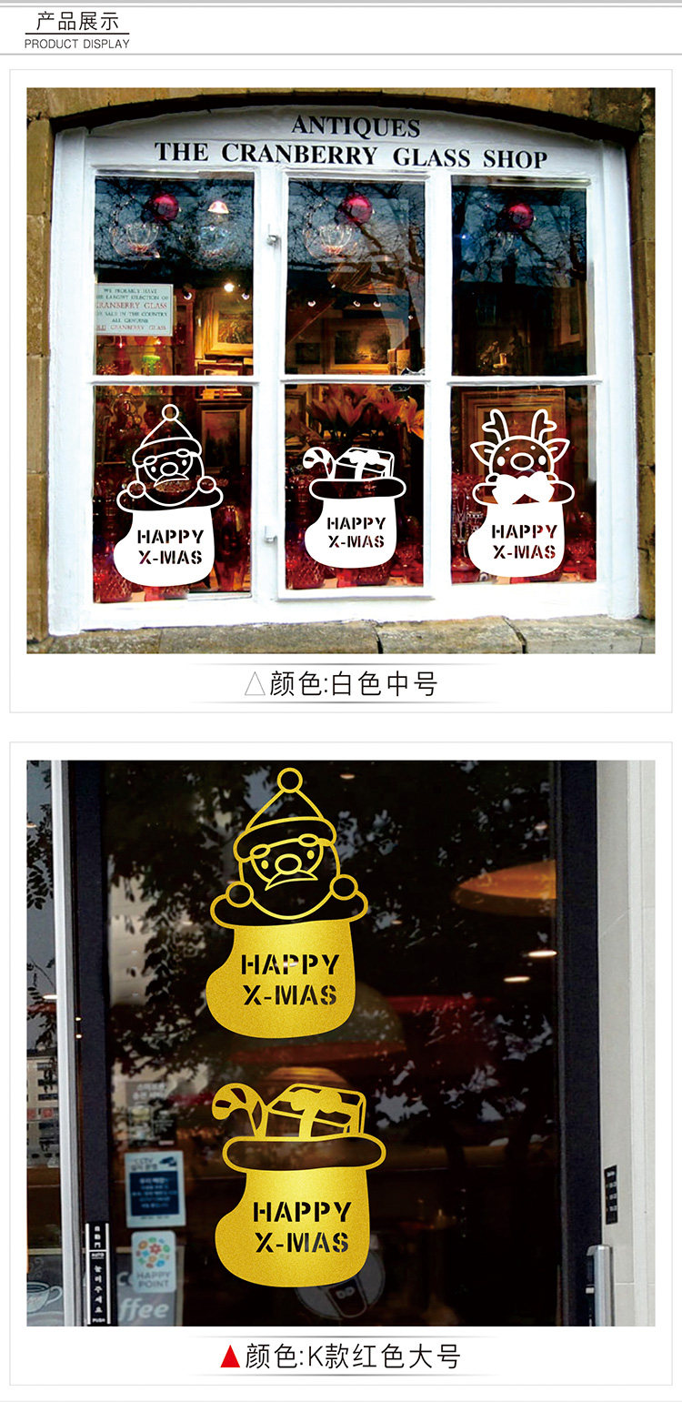 圣诞节商场店铺橱窗墙贴纸新年节日店面玻璃门贴装饰场景布置金色