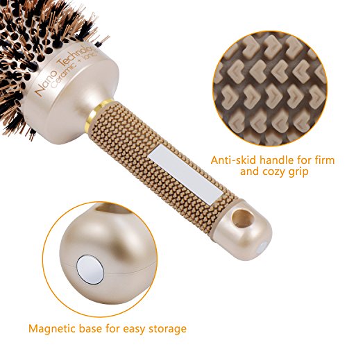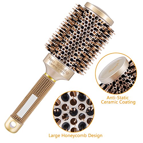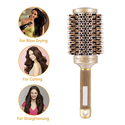 Ameauty Professional Styling Round Hair Brush for Women, Made of Boar Bristle for Blow Drying, Curling & Straightening, Nano Technology Ceramic for...