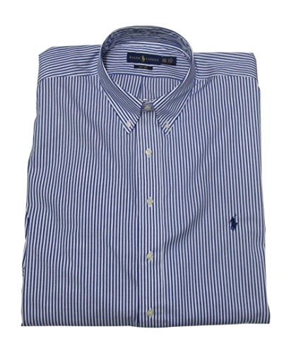 Ralph Lauren Men's Dress Shirt Big and Tall Long Sleeve Poplin Stretch Cotton (3XB, Blue / White Stripe)