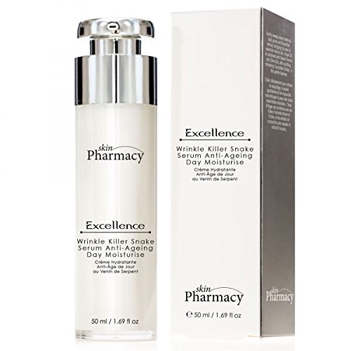 -. Binding : Health and Beauty -. Brand : Skin Pharmacy -. EAN : 0637665735529 -. Feature : Syn-Ake, aims to diminish the appearance of fine lines and wrinkles by mimicking the effects of snake venom to freeze, firm and lift the skin / Gransil, produces a soft focus effect to blur away fine lines and wrinkles / Aquaxyl, aims to optimize the circulation of water between the layers of the skin and works to prevent water loss -. IsAdultProduct : 0 -. Label : skinChemists -. Manufacturer : skinChemists -. MPN : SP038 -. NumberOfItems : 1 -. PackageQuantity : 1 -. PartNumber : SP038 -. ProductGroup : Beauty -. ProductTypeName : BEAUTY -. Publisher : skinChemists -. ReleaseDate : 2016-12-25 -. SKU : SP038 -. Studio : skinChemists -. Title : Skin Pharmacy Excellence Wrinkle Killer Snake Serum Anti-Aging Day Moisturizer -. UPC : 637665735529