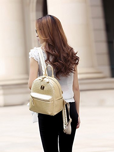 -. Title : LIZHIGU Leather Weave Backpack Fashion School Bag Travel Outdoor Purse for Women Girls