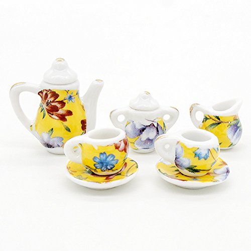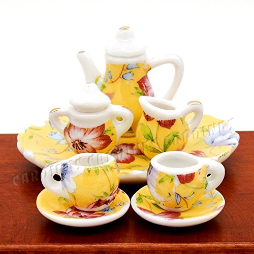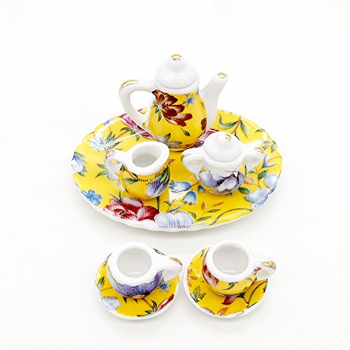 -. Feature : Scale: 1:12 Dollhouse Kitchen Miniature / Including: 1x Teapot, 1x Sugar Bow, 1x Creamer, 1x Tray, 2x Cups, 2x Dishes (Not Including Other Items) / Approx. Size (LxWxH): Teapot 3x1.7x3 cm - 1.2x0.7x1.2 inch / High Details and Workmanship: For Dollhouse Decor of Kitchen, Diningroom, Livingromm, Restaurant, Bar etc. / Teapot and sugar bowl both have a lid, and the lids are removable.