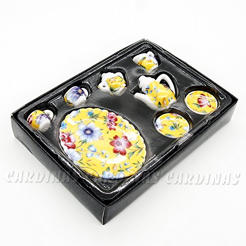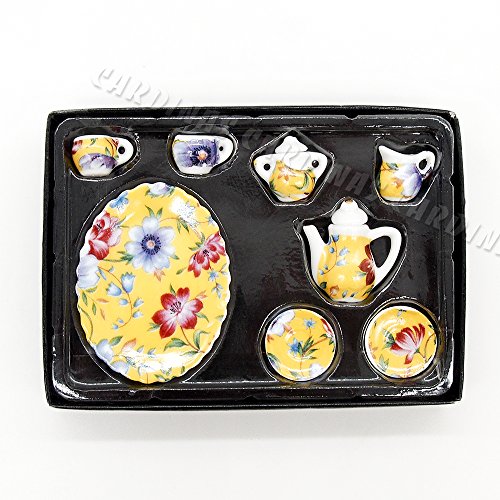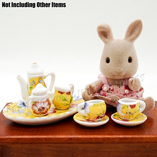 -. Title : Odoria 1:12 Miniature 8PCS Porcelain Tea Cup Set Yellow Lily Chintz Dollhouse Kitchen Accessories