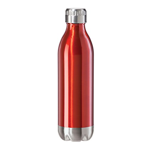 The Oggi Stainless Steel .5 Liter/17oz Calypso Sports Bottle offers style and double wall insulating performance that you will love to take along with you in your car, bike, backpack and more! Classic shape with tight-fitting twist-on cap with silicone gasket eliminates leakage. Wide mouth fits ice cubes. The stainless steel liner is completely safe and will not stain or absorb odors or flavors. The bottle is also BPA-free. Eco-friendly and attractive way to stay hydrated on the go! USE & CARE: Hand wash only. Beautiful LustreTM colors: Stainless Steel, Red, Blue ,Purple.Feature