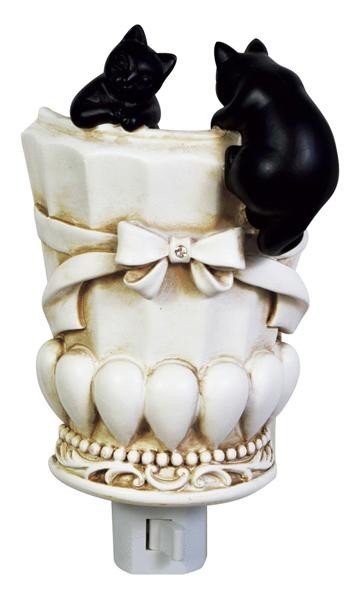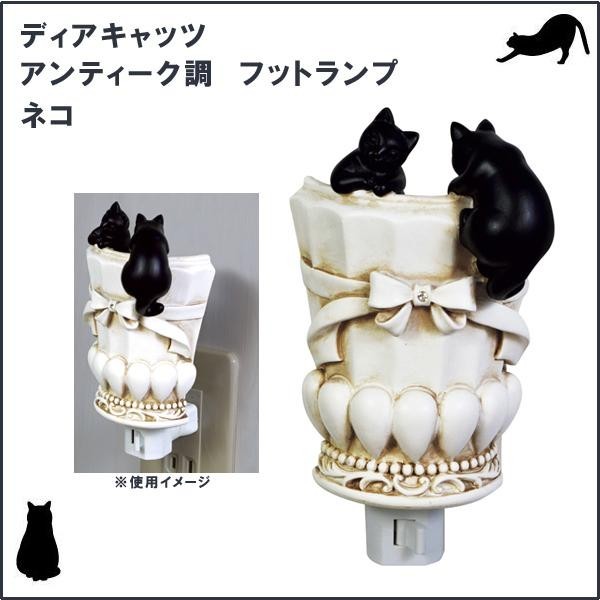 | アンティーク調のお洒落なフラワーポットで遊ぶ愛らしい黒猫が可愛いフットランプです♪ |