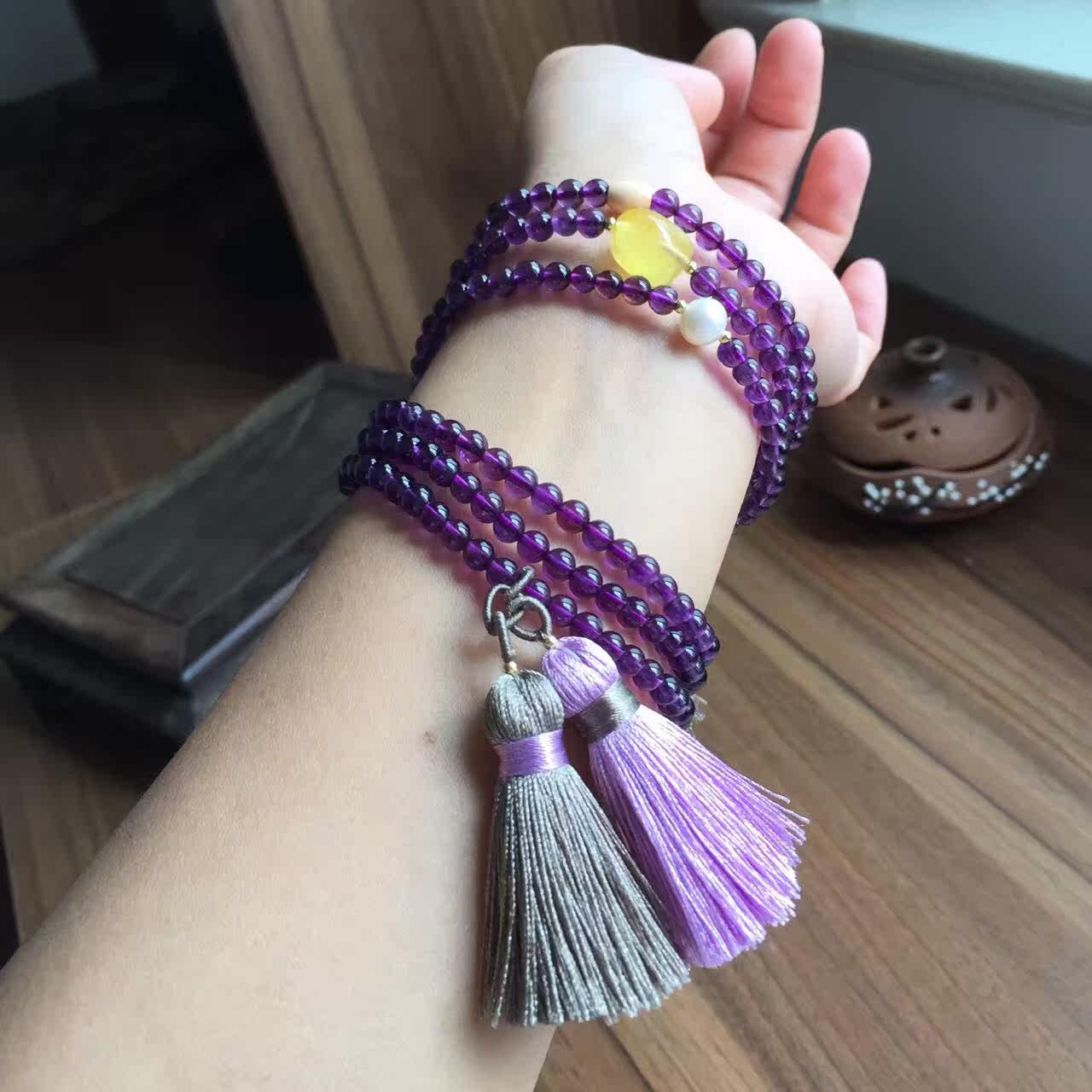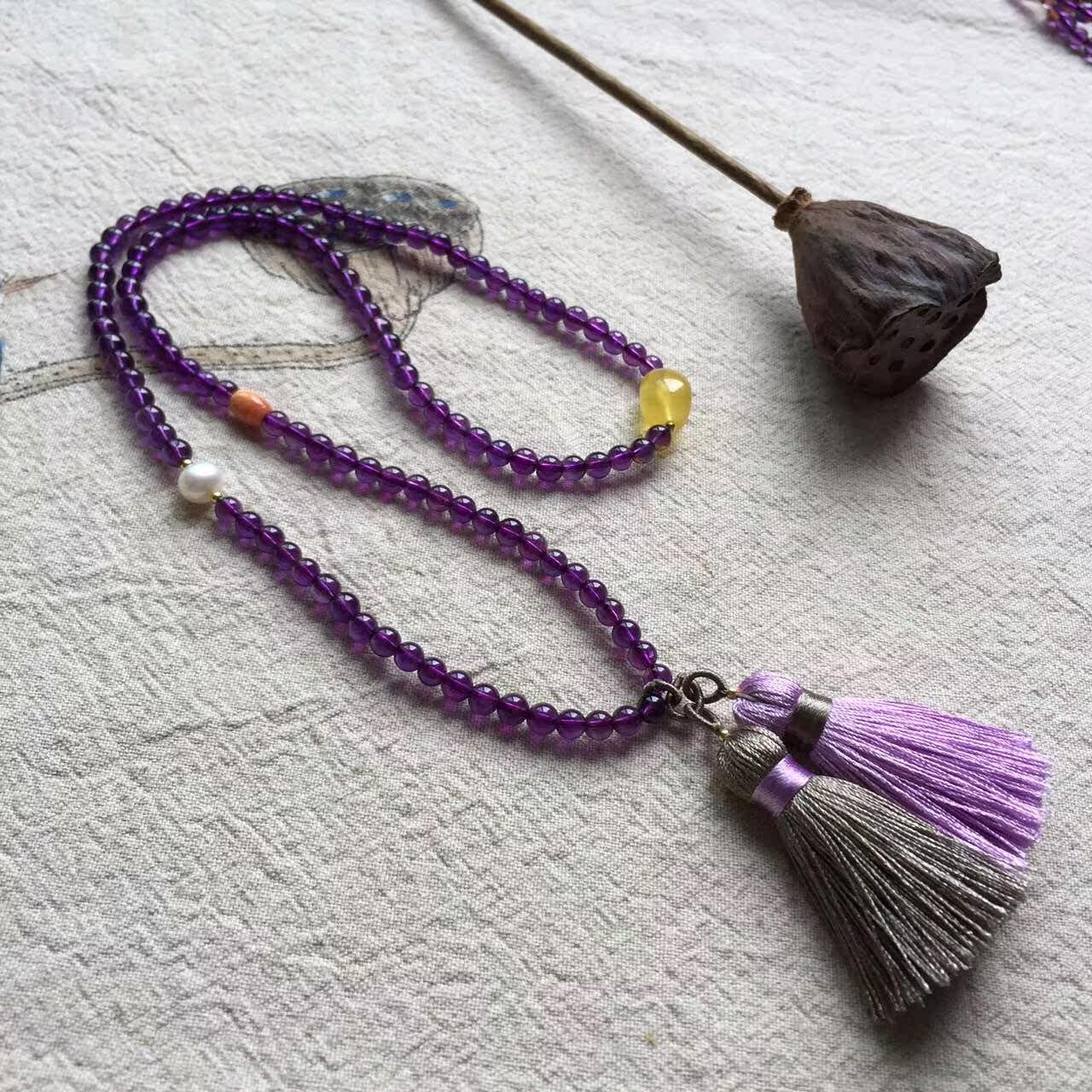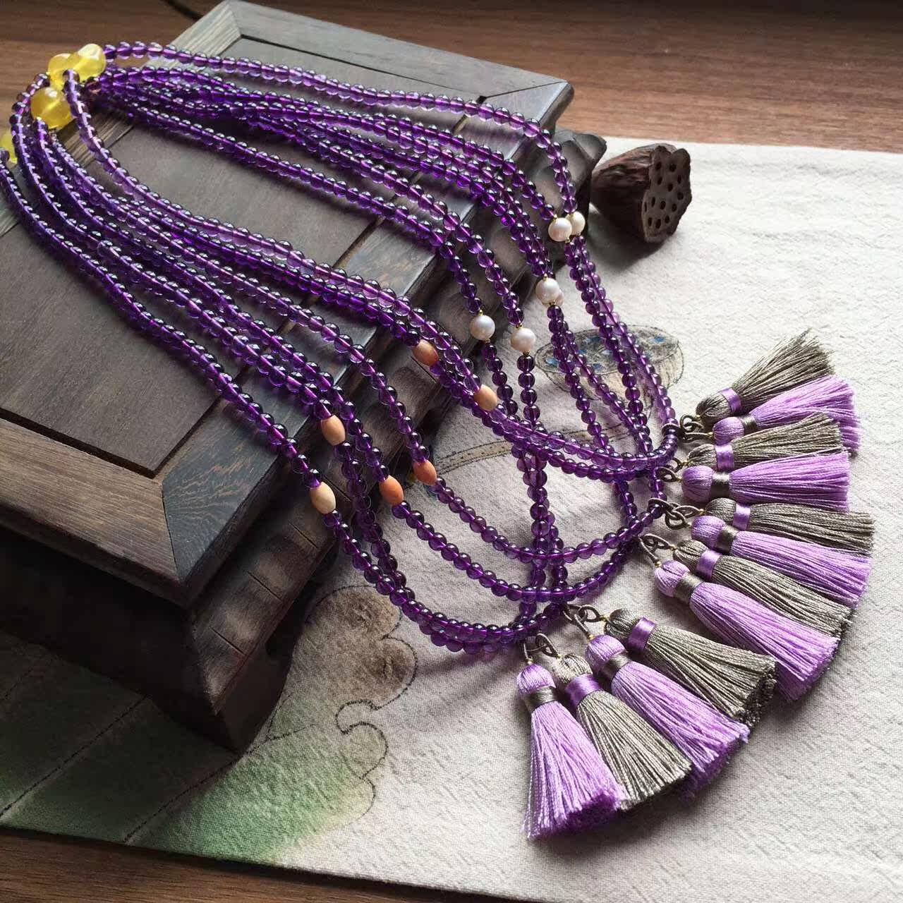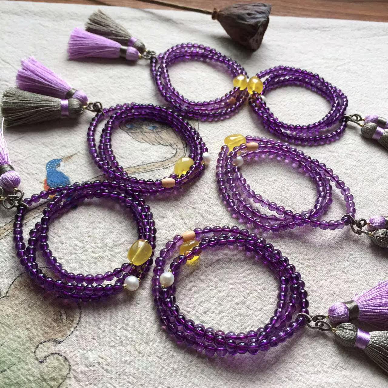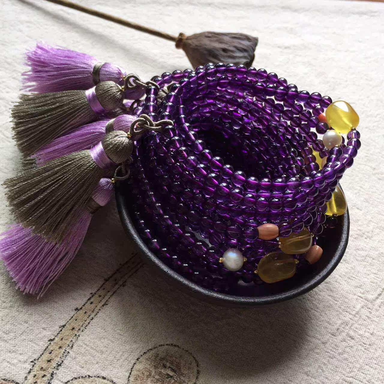 天然水晶 紫水晶手链 项链 蜜蜡珍珠搭配女士饰品