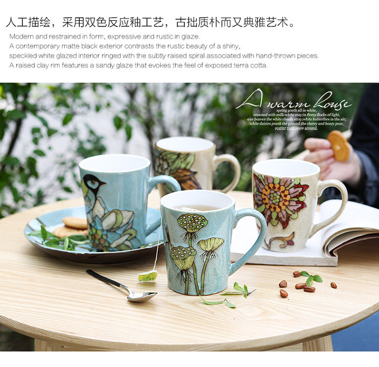 手绘创意咖啡马克杯个性陶瓷杯子套装情侣对杯早餐水杯麦片牛奶杯