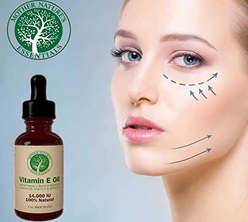 -. Title : Vitamin E Oil 100% Pure & Natural - Vitamin E Oil 14,000 IU (d-alpha tocopherol) + Jojoba Oil + Vitamin C + Coconut Oil. Unique Formula of Natural Nourishing Oils Known to Assist in Diminishing Fine Lines, Wrinkles, Moisturize the Skin, Diminishing Appearance of Stretch Marks, Promoting Skin Cell Regeneration and Damaging Effects of the Sun. This Serum is Light and Refreshing, Quickly and Easily Absorbing.