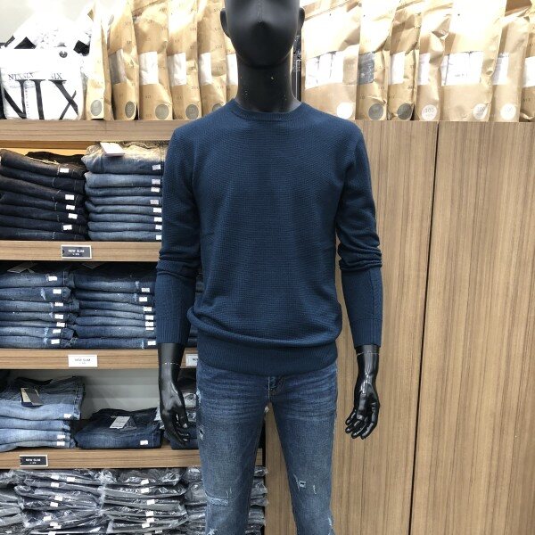 전체 허니컴 조직을 사용하여 깔끔하며, 심플한 코디가 용이한 라운드넥 스웨터