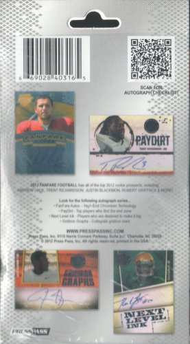 - Here's a twist on searching for autographs in packs....every 2012 Press Pass Fanfare series box contains one pack with one autographed card! Guaranteed to get an autograph, possibly of 2012 rookies Andrew Luck, Robert Griffin III, Russell Wilson, Trent Richardson, Justin Blackmon, Michael Floyd, LaMichael James, Brandon Weeden, Kendall Wright, Kellen Moore or others.