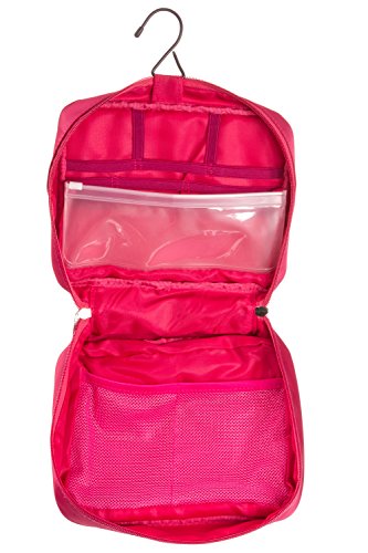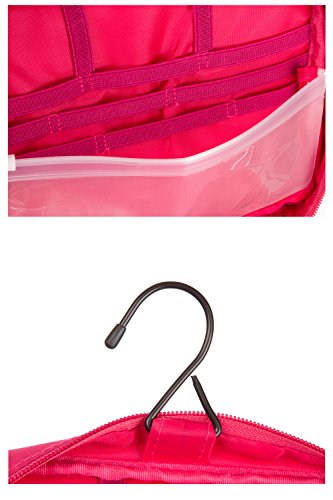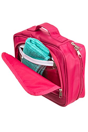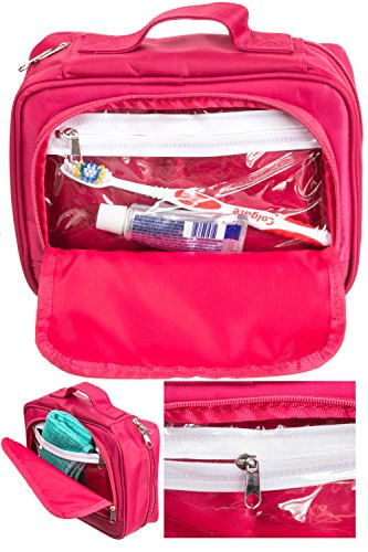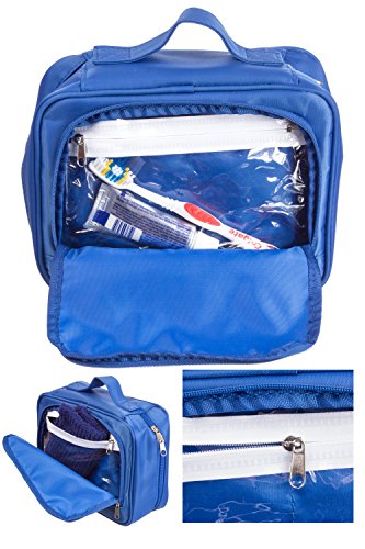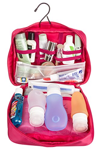 Product Description Easy your travel with the most well though design for a travel bag that can carry the essential accessories you need to bring along to every trip. Durable water resistant material makes it impossible for potential leaks to get out of the bag. Also includes two waterproof compartments perfect to keep those Ohigher leakage risk itemsO and also great for separating toothbrush from everything else. Mesh bags, elastic bandages and multi layer design keep all toiletries and cosmetics organized. Convenient carrying handle and included hanger make it easy for you to carry or hang whenever you need to. Small enough for a carry on and still able to carry all essential toiletries. Measures 9.5O x 4.5O *8.5O. We strive for your total satisfaction backed by a 100% money back guaranty, so what are you waiting for? scroll to the top and add to cart. 0