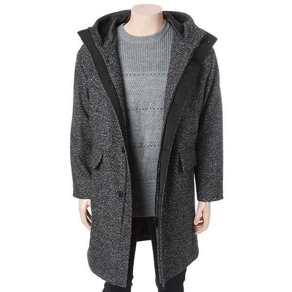 남성 오버핏 이중여밈 롱기장 안감누빔 후드코트입니다. 무게감이있는 모직원단으로 슬림보다 약간 여유있는 세미오버핏의 라인이 예쁜 베이직 후드코트입니다. 구김이 잘 가지 않으며 안감을 소매끝까지 얇은 패딩누빔처리하여 한겨울에도 따뜻하게 착용하시기 좋으며 심플한 원컬러의 블랙컬러와 헤링본느낌의 챠콜컬러로 가슴부분에 포켓을 주어 총 5개의 포켓으로 다양한 수납을 용이하도록하였습니다. 어깨가 내려오게 입으시는 오버핏으로 젊은 감각의 트레디셔널한 코트로 비지니스룩이나 교복룩으로도 따뜻하고 멋스럽게 입으시기 좋은 스타일입니다. | |