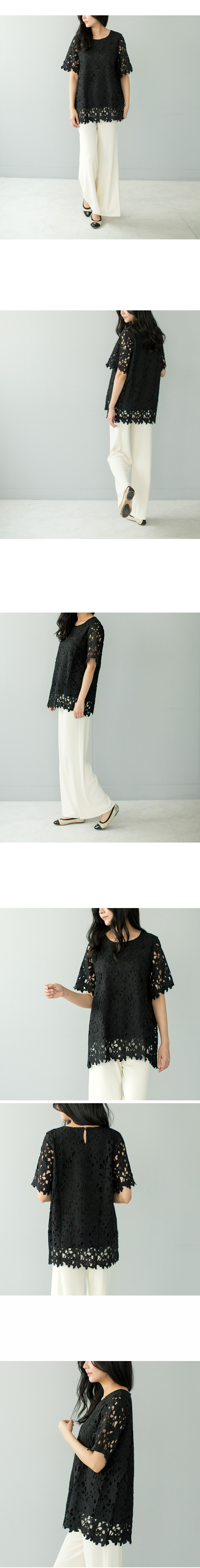 소매단 밑단까지 꽃잎펀칭