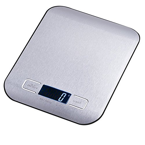 Wetex Digital Kitchen Scale Multifunction Food Scale, 11 lb 5 kg, Silver, Stainless Steel Surface
