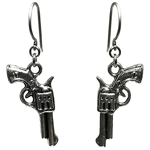 -. Title : [happy new earrings] 金属アレルギー対応 フックピアス チタン製フック使用 拳銃のモチーフ リボルバー かっこいい存在感